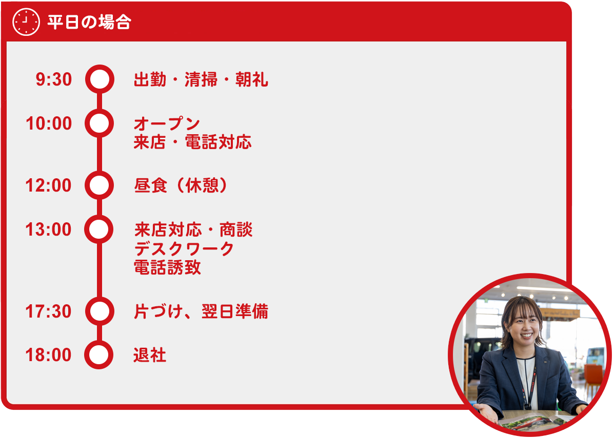 入社当時は毎日が学びの連続で、先輩や社内研修に支えられながら大きく成長してきました。今ではお客様から「ありがとう」や「助かったよ」とお褒めの言葉をいただくことが増え、お客様のカーライフに長く寄り添える仕事にやりがいを感じています。1年目からお世話になっているお客様には「立派になったね」と言っていただけるようになり、これからはお客様にとって最適なタイミングで乗り換えをご提案できるよう、更に努力していきたいと思います。