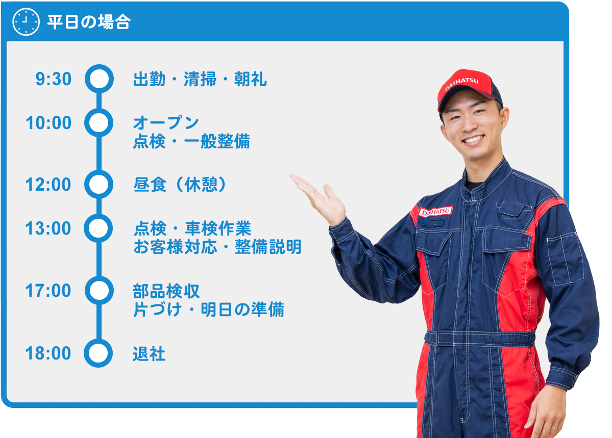 愛知ダイハツは全国の中でも規模が大きく、たくさんのテクニカルスタッフが働いているので入社後も安心です。